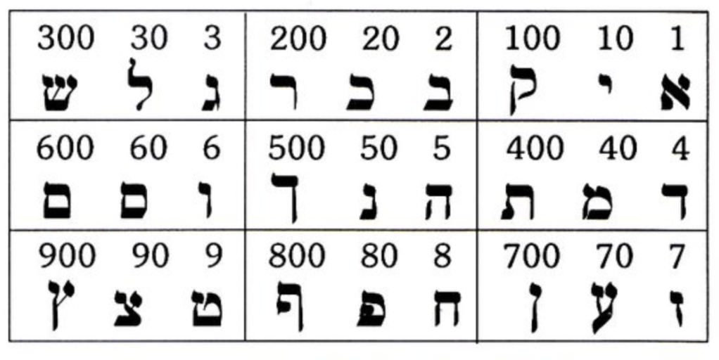 There is, however, a 4th letter to each Chamber that is rarely mentioned. When a digit in the thousands was called for it was written with the same Hebrew letters albeit larger than the letters before and after; so a larger Aleph א inferred 1,000, a larger Beth ב for 2,000, and a larger Gimel ג for 3,000, and so on through the rest of the alphabet. It must be remembered that when the very earliest Hebrew was scribed there were no separate glyphs for numbers in the Mid-East. Counting was facilitated by letter glyphs. Number glyphs came later and from further East.2