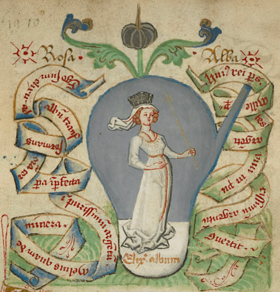Again, in the seventeenth plate of that same work, the interior star or vessel of the Mercury Chakra depicts a maiden also holding her hand over the intestines. Furthermore, in Titus Burckhardt’s Alchemy, the author reprints a plate from a Gothic manuscript in the British Museum.