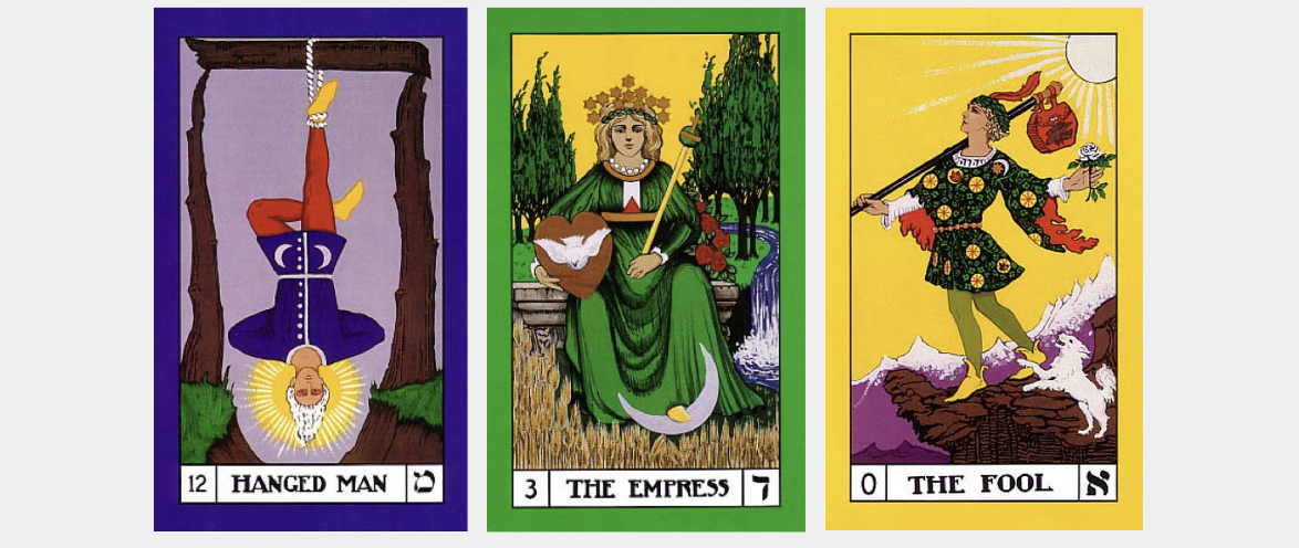 The exoteric Tarot has suffered a great scoffing and criticism through its brief history. And rightly so for that matter. Thousands have reduced them to a mere fortune-telling medium, or a silly game deck. However, to those who have taken the time and effort to discover that behind the simple facade is a book, disguised as a pack of cards. The unique feature, moreover, is that the pages of this book are interchangeable. In addition, each of the twenty-two Major Arcana of Tarot is also assigned a letter of the Hebrew alphabet, which are themselves hieroglyphic. This renders the ability of the proficient user to spell out certain words in various sacred writings like the Bible in pictorial symbolism. More on this under the ‘קבלה, QBLH’ and the ‘Addendum’ sections in the Index.